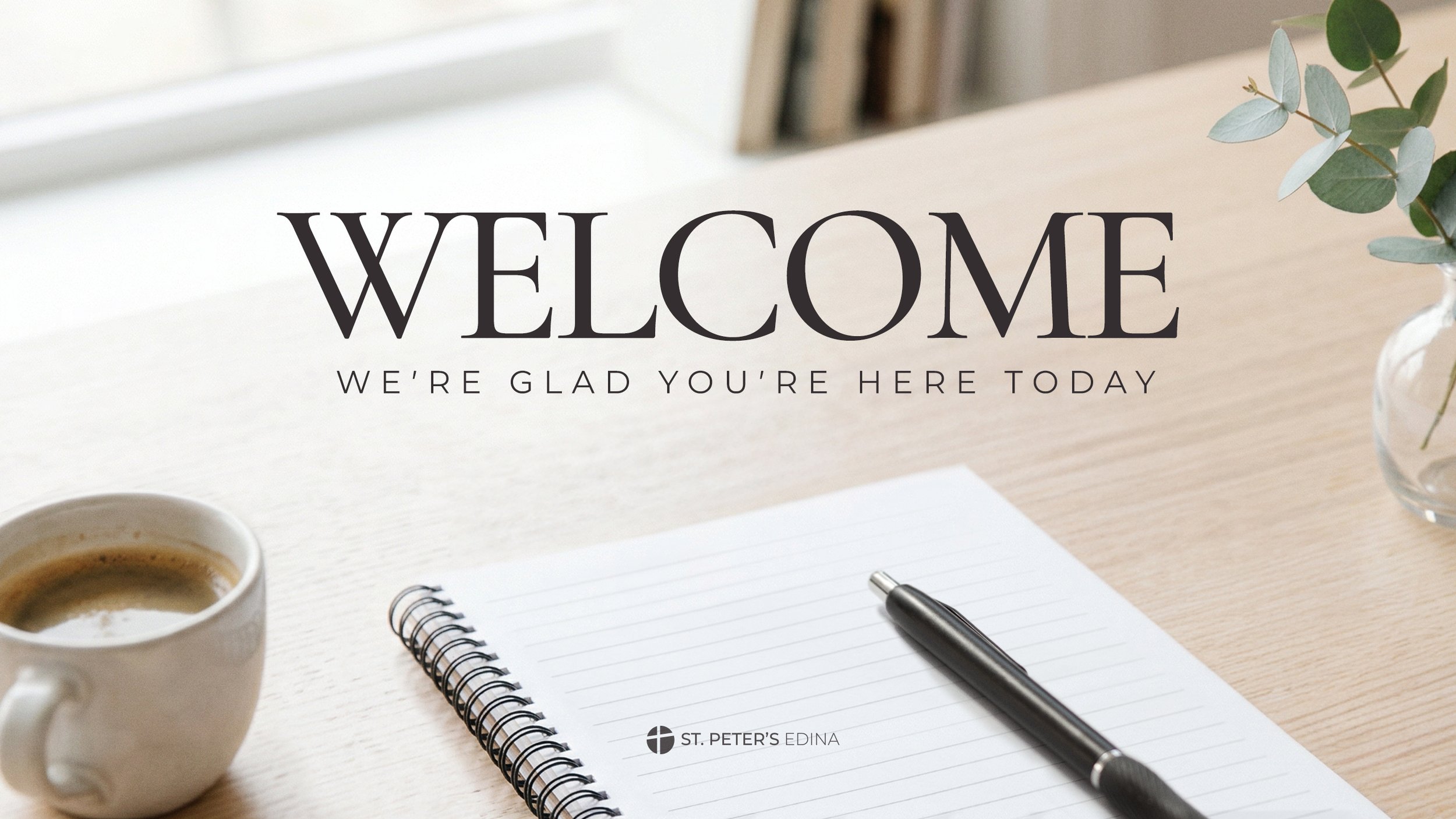 This year, we are following "The Weekly Prayer Project" - a challenge to journal, pray, reflect and connect with God. Discover what God is doing in your life through a Scriptural promise each week. Be sure to pick up a book at the Welcome Center or request one at prayer@stpetersedina.org. Fill out a Digital Connect Card so we know you were with us and can provide answers to any questions you may have. Please worship with us again soon.