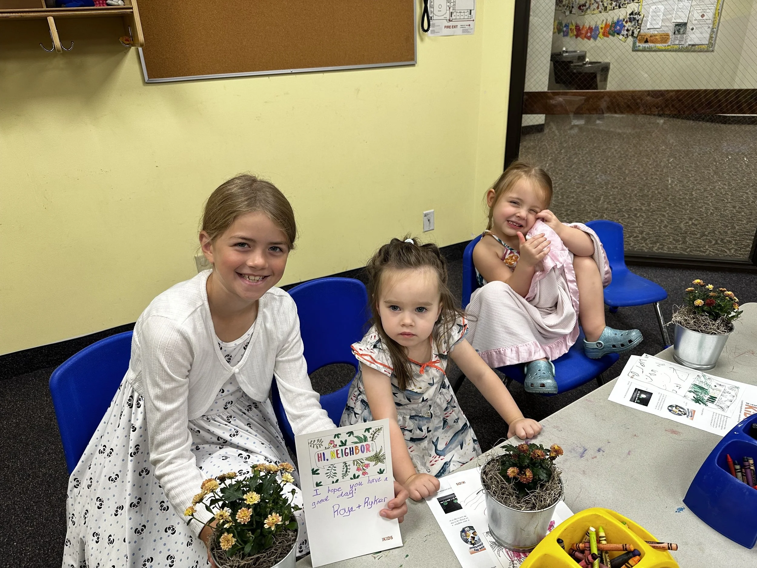 Every Sunday, our youngest worshippers head off at the beginning of the message for a time of active learning about the same Scripture that the adults hear about in the sanctuary. You can see the smiles as they prepared gifts for their neighbors. Sometimes they play a game, go on a discovery journey, learn a song, make a craft, color a picture, create a themed snack, memorize a Bible verse, watch a video, or just listen as the Bible story of the day is read. It is always an adventure.
